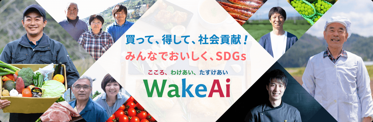 WakeAi(ワケアイ)とは、「社会貢献型通販モール」として、新型コロナなどの様々な理由で行き場を無くした訳あり食品を無駄にせず社会で分け合える通販サイトです。