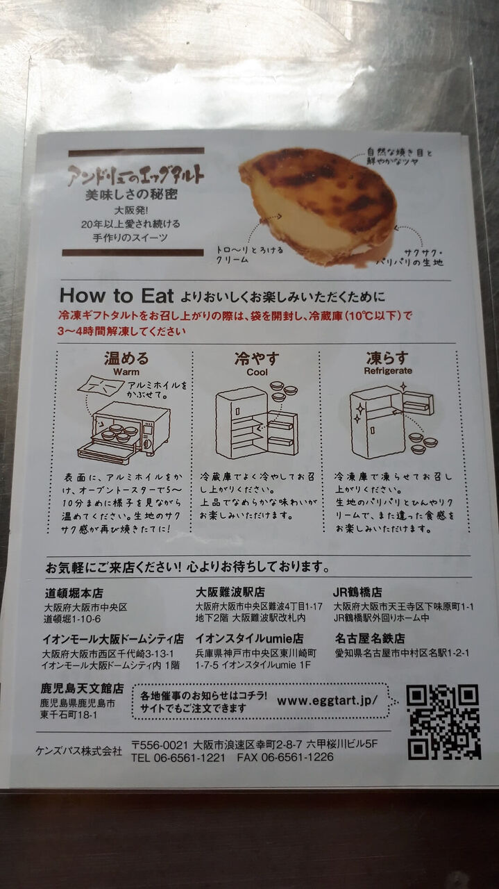 カードには、商品を買ったことへの感謝と解凍の手順、お店の紹介が書かれていました。