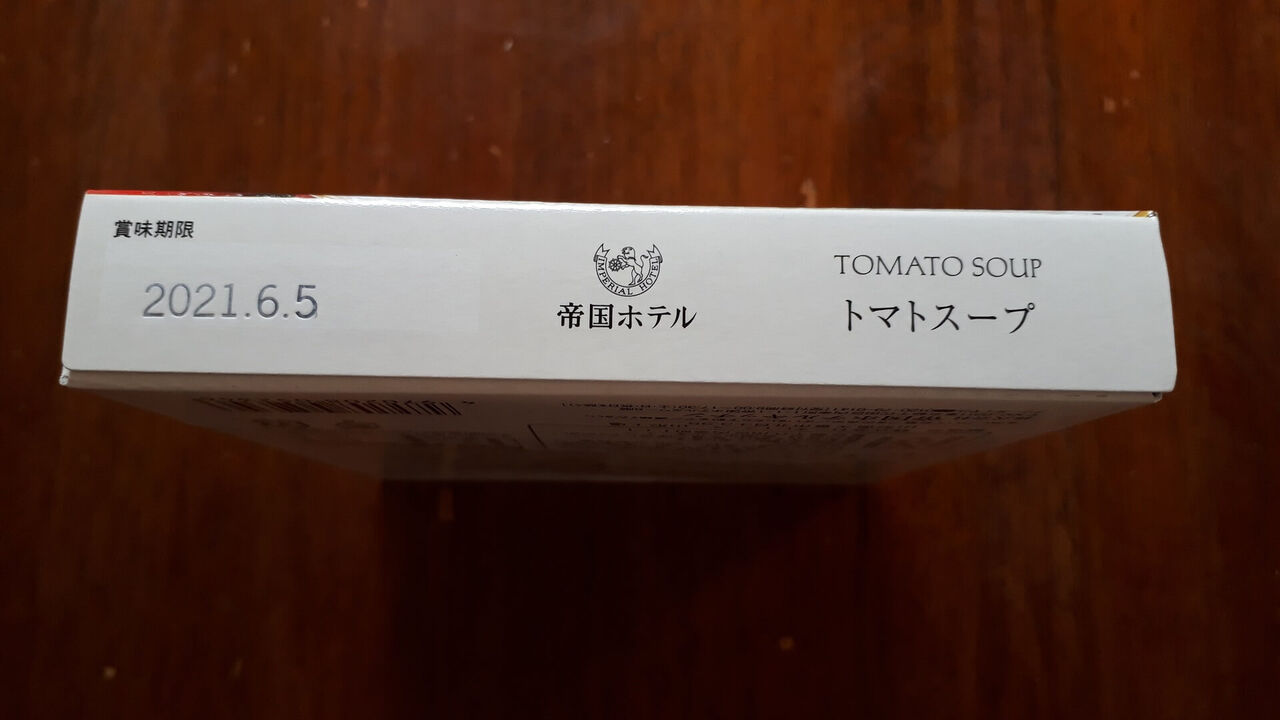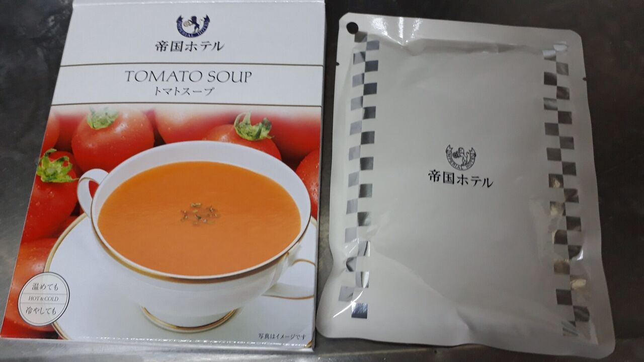 トマトスープを箱から出し、袋を箱の隣に並べてみました。